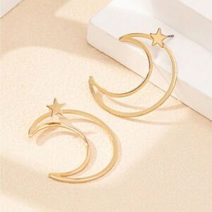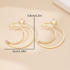 Beautiful Elegant Star and Crescent Moon Earrings with Unique design. Gorgeous Gold Tone and easy to use. Perfe with any Outfit! You’ll get tons of compliments! Very pretty design!🖤