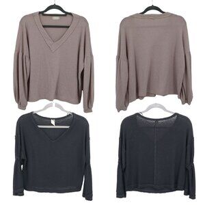 waffle knit, v-neck, long sleeves, sweaters bundle, casual, comfortable, minimalist, loungewear, everyday, home, running errands, relaxed, simple, basic, understated, neutral boho, bohemian, slouchy, oversized, boxy, coastal