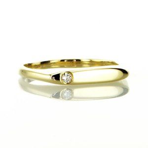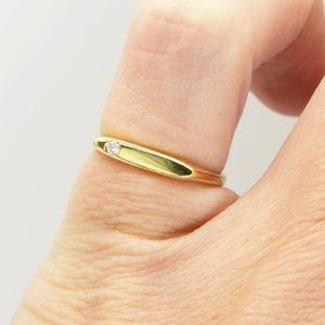 Minimalist Thin Diamond Pinky Ring Solid Stacking 14k Yellow Gold Round 0.02 ct