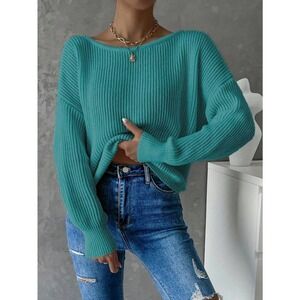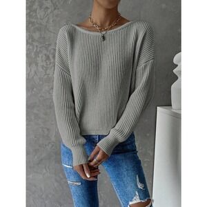 Minimalist Twist Back Drop Shoulder Boat Neck Sweater backless