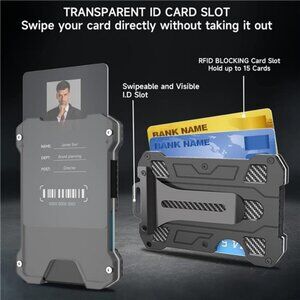 【Transparent Window Design Slim Wallet】On the front of metal wallet, we have designed an ID Card Holder slot and anti slip-out silicone which allows you to swipe the card without removing the card and prevent loss, which is more convenient to use. The metal clip on the other side has an opening design, allowing you to put your wallet on a belt, pocket, key chain, backpack or lanyard.
