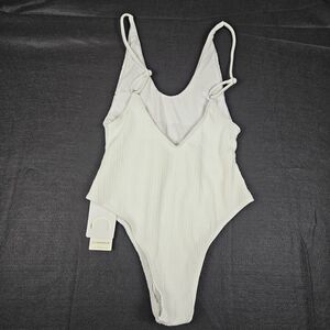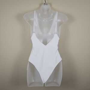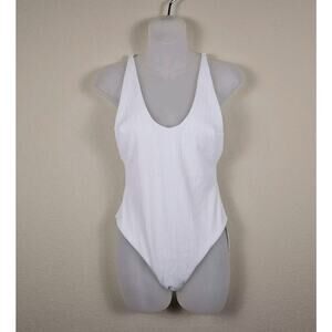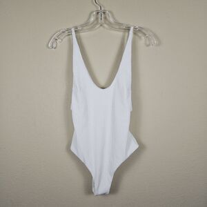 Minimalist White One Piece Swimsuit Womens M Ribbed Resort Cruise Vacation Beach