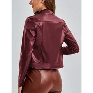Minimalist Zip Up vegan leather Moto Jacket motorcycle burgundy dark red