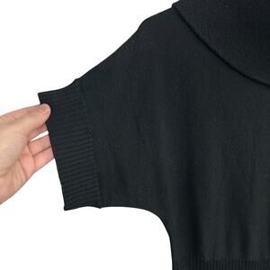Minimalist chic wool blend sweater dress black cowl neck short sleeve med