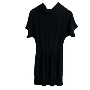 Minimalist chic black sweater dress wool blend cowl neck short sleeve M