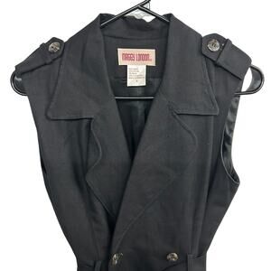 Quiet luxury linen blend trench style dress black belted sleeveless size 4