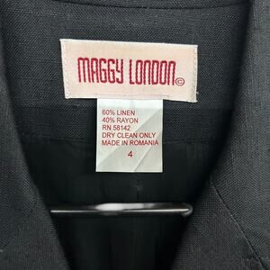 Minimalist chic trench dress Maggy London black linen blend belted size 4