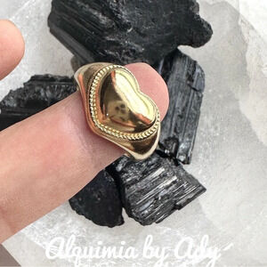 Minimalist heart Vermeil gold 925 stamped cuff adjustable ring
