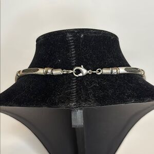 Preowned necklace in good shape. The metal has some discoloration and surface abrasions. (Please see photos to get an idea of what the condition of the “barrel” beads typically looks like.)