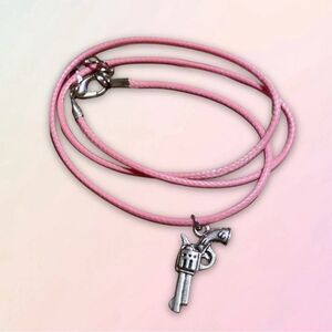 Minimalist, Stainless Steel Pistol Charm, With Adjustable Black Rope