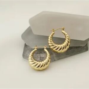 Textured minimalist hoop earrings in gold tone hardware
