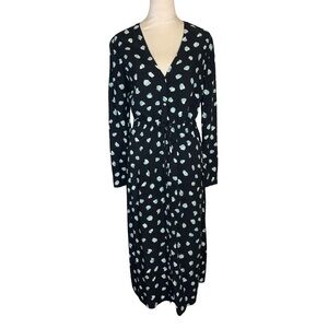 Minimum Niola Dress. Drawstring tie waist. Black with green print. Size Eu 38/Us 10. No flaws. Armpit to Armpit 20 inches. Shoulder to Hem 47 inches.