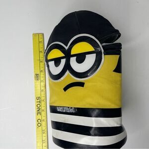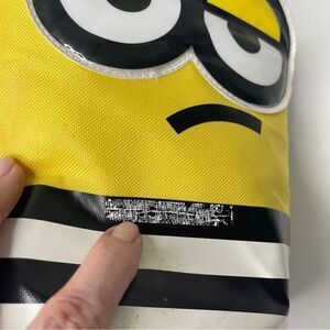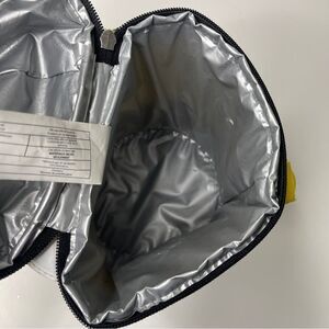 Zippered top. One black stripe appears to have had a label - possibly a name label. Cover it with your own label!