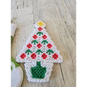 are about 5 in by 4 in crocheted Christmas tree is about 5.5 in by 4 and overall all in good condition no significant problems