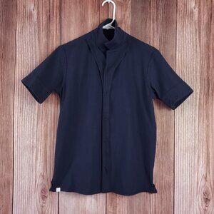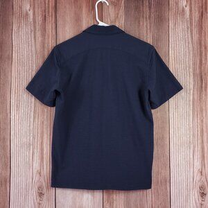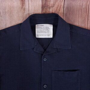 Ministry of Supply Mens XS Hybrid Seersucker Coolmax Navy Button Up SS Shirt