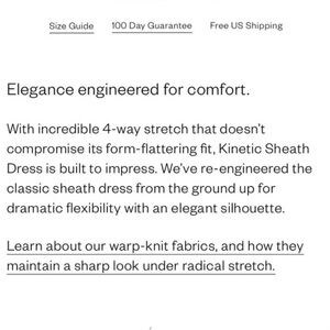 With incredible 4-way stretch that doesn't compromise its form-flattering fit, Kinetic Sheath Dress is built to impress. We've re-engineered the classic sheath dress from the ground up for dramatic flexibility with an elegant silhouette. Our warp-knit fabrics maintain a sharp look under radical stretch.