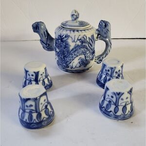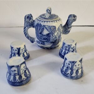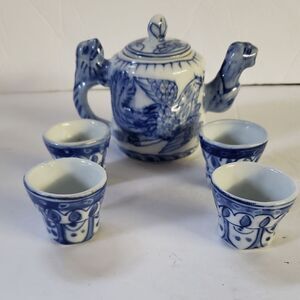 Miniture Saki Set Color Blue & White See Photos for Measurements Preowned C--3--001--#2038