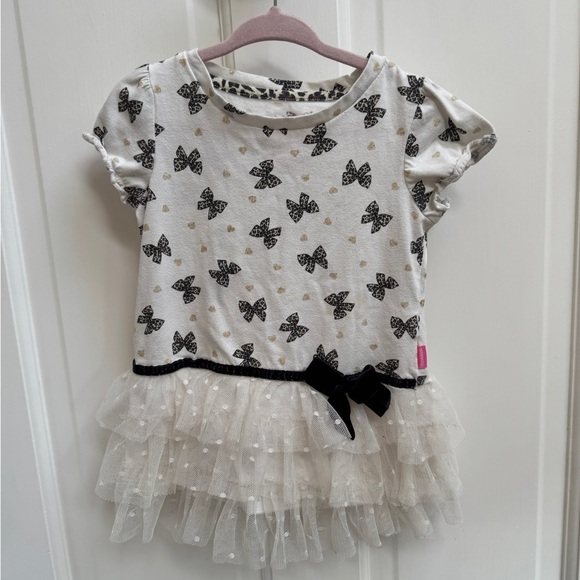 Miniville 3T Girls White & Black Leopard Bow Short Sleeve Blouse Top Tulle