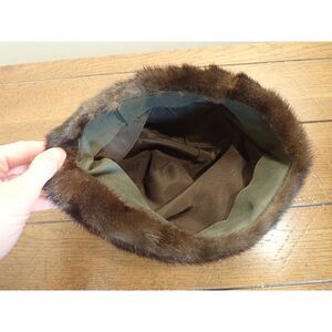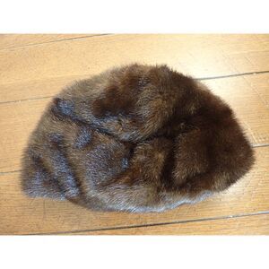 Mink Fur Cap Vintage Small Pom Pom Dark Brown Skull Cap