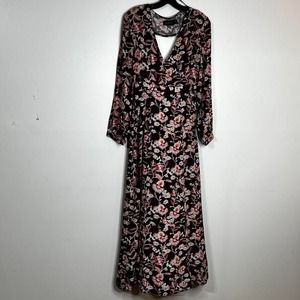 Mink Pink Crafty Critters Black Pink floral Maxi Dress Women’s Size S