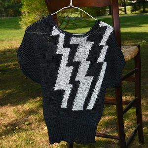 This is a Mink Pink Lightning Bolt Sweater. It is labeled as a size XS but it fits much more like a S and even a M can wear this long tunic. It is in excellent condition and was only worn a few times, never been washed without flaws.