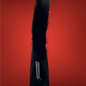 Featuring a gorgeous black satin evening bag with an authentic mink handle. Beautiful and unique. In pristine condition