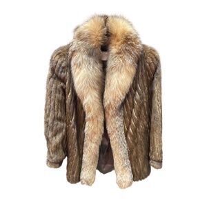 Mink coat with Coyote fur collar. Vertical piping, decorative panelling that creates a vertical line design element on the coat. It's not labeled petite, but I would recommend this for someone 5'8 or shorter.