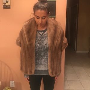 Mink stoll. Has name “Rose Scordo” embroidered inside, but can probably be removed.