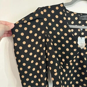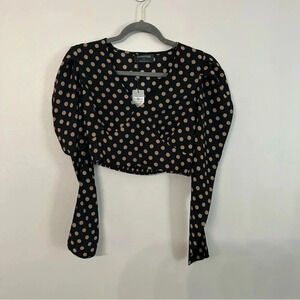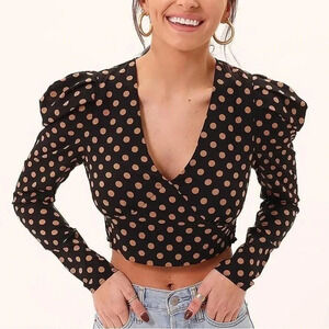 MinkPink Ayat Polkadot Black and Beige Faux Wrap V-Neck Crop Top NWT