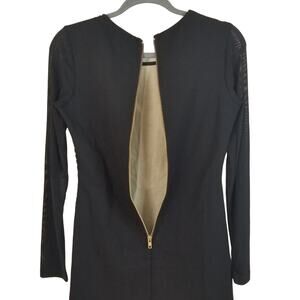 MinkPink Black Sheer Mesh Sheath Mini Dress M Vegan Leather Sexy Modern NEW