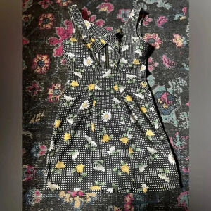 Floral polka dot sleeveless Mink Pink dress with zip front & crisscross back. Good condition.