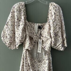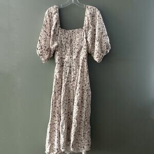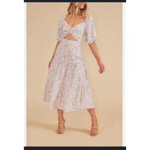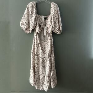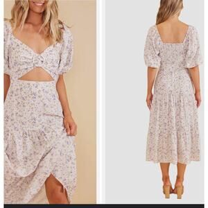 MinkPink Hailey Floral Print Prairie Smocked Midi NWT Dress