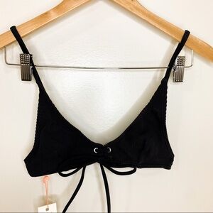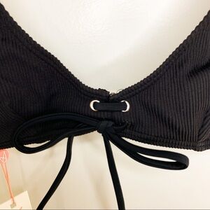 MinkPink bikini top. Black ribbed fabric, lace up front. NWT