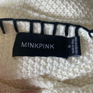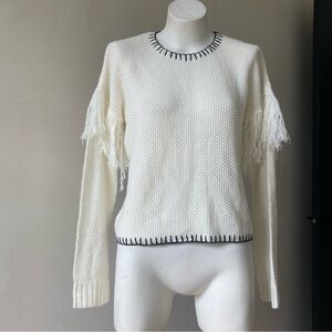 MinkPink | Miles Apart Fringe Knit Contrast Stitch Sweater