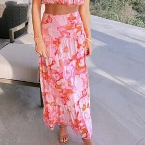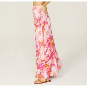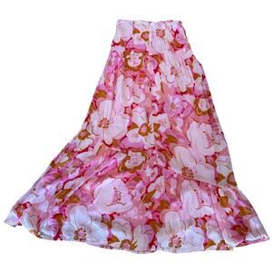 MinkPink Pink Tiered Ruffle Maxi Skirt XS Cottagecore Boho Vacation Full $129