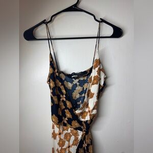 MinkPink Revolve Nour Cami Contrast Black White Yellow Floral Wrap Maxi Dress XS