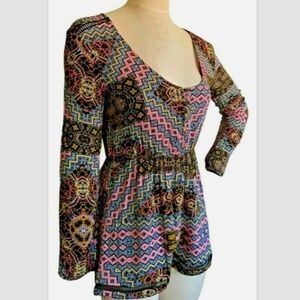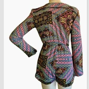 MinkPink Romper BOHO Scoop Neck Long Sleeve Sz S Multicolor #225G