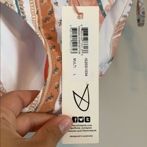 Medium top and large bottoms. Brand new this season with tags. Boho print, great adjustable bottoms and top - triangle bikini style. I love them but really I need the next size in both and the company is based in Australia so the cost to ship back was way too high. My loss is hopefully someone’s gain!!
