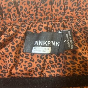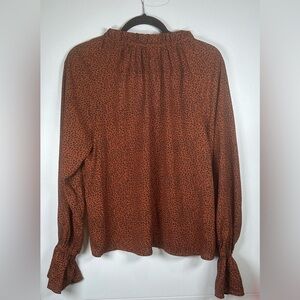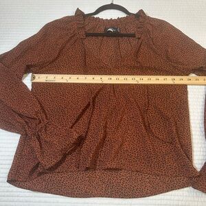 MinkPink Rust/Black Animal Print Peasant Blouse. VNeck, Long Sleeves. Size S.