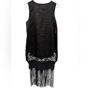 NWT MinkPink Women’s Black Tank Embroidered Dress With Crochet Bottom Tassels Hem Fleur De Lis pattern L
