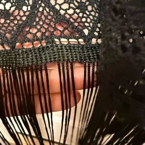 MinkPink Women’s Black Tank Embroidered Dress With Crochet Bottom Tassels Hem L