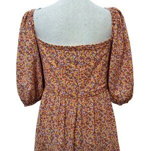 MinkPink Womens L Orange Multicolor Ditzy Floral Peasant Midi Dress