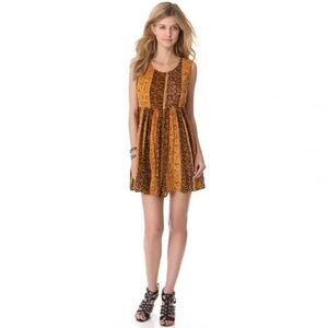 MinkPink | Yellow Orange Animal Print Crepe Gauze Sleeveless Mini Dress, Small