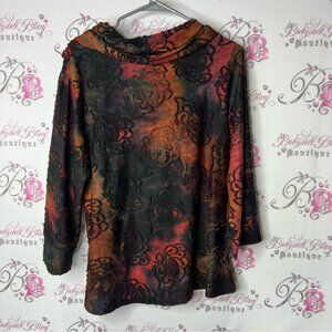 Minkas long sleeve embroidered floral pattern tie dye Colorful 3D Top