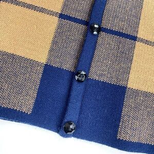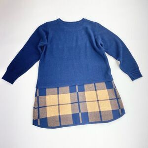 Minkas fall navy plaid long sleeve cashmere blend sweater L