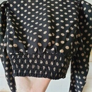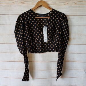 Minkpink Ayat Polka Dot Wrap Long Sleeve Cropped Top Revolve Black Size Small