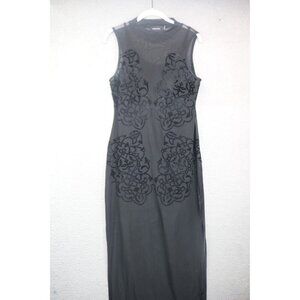 Minkpink Black Velvet Burnout Maxi Dress-Size Large-Mesh-Whimsigoth-Witchy