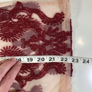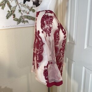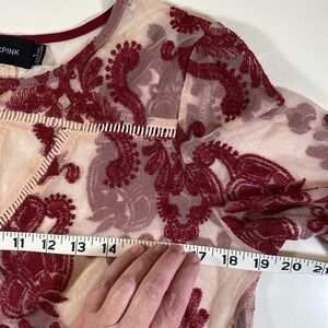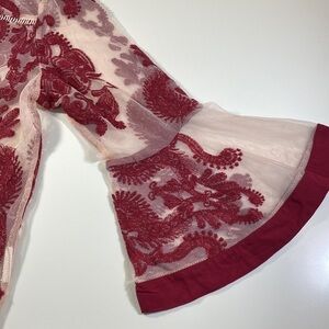 Minkpink Embroidered Sheer Mesh Top Pink Tulle Burgundy Trim Bell Sleeves Size S