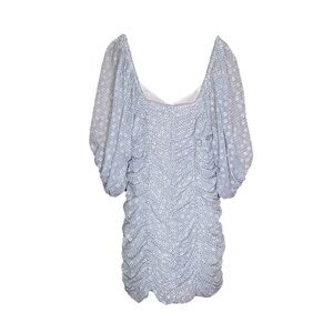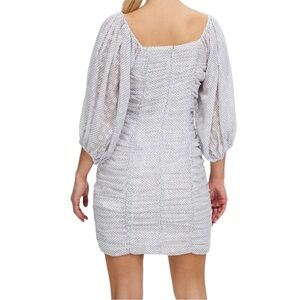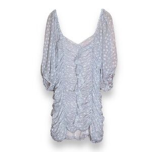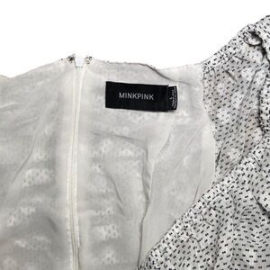 Minkpink Kalea Ruched Mini Dress Black White Ruffle Size Large Balloon Sleeve