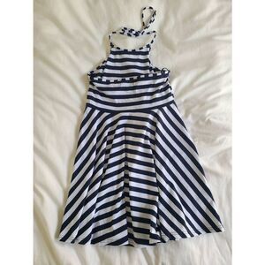 Minkpink Mini Halter Dress Women's Medium Blue White Striped Sleeveless Pleated